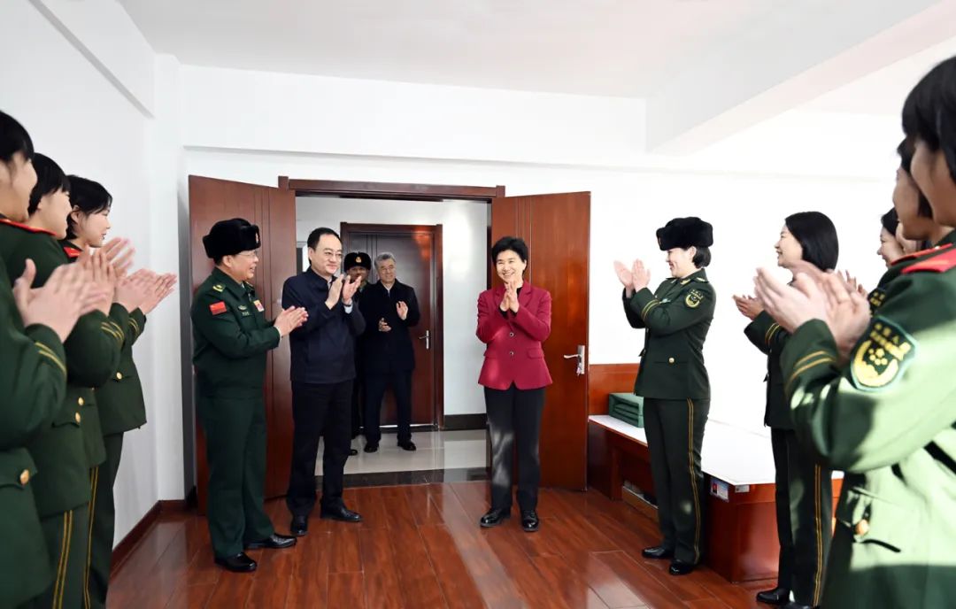 省委副书记、省长梁惠玲来到武警黑龙江省总队,看望慰问电话班的女兵。