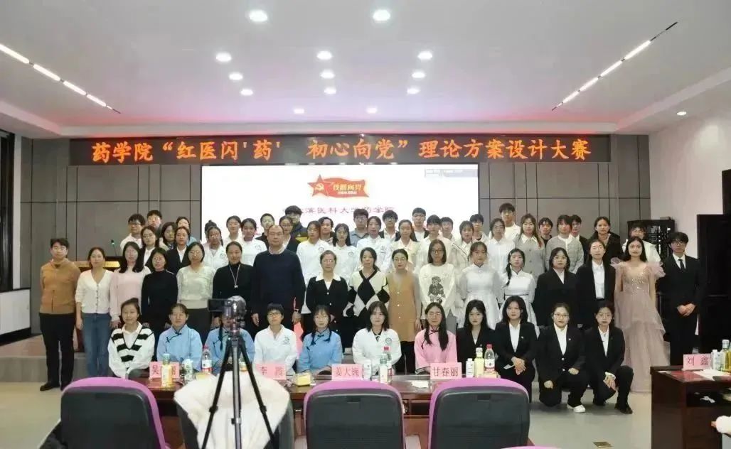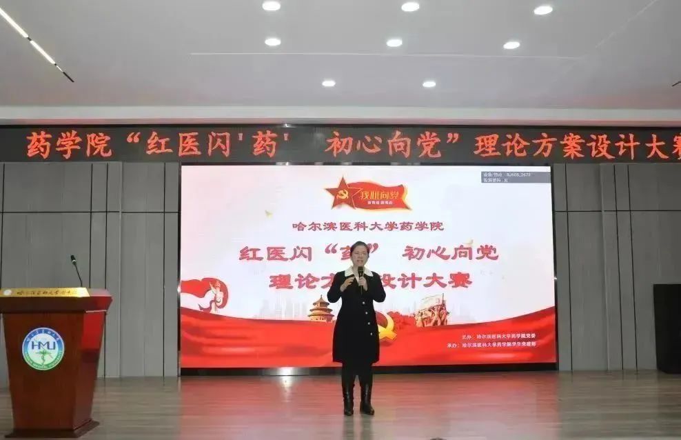 生逢其时,奋斗其时。为弘扬爱国主义精神,传承红色家书革命精髓,推动党的二十大精神入脑入心,11月29日晚上,药学院党委在在学校星联学术报告厅举办第十二届“理论方案设计大赛”,带领全体师生重温红色历史记忆,学习伟大建党精神。学院党委副书记李霞、副处级辅导员兼学生党总支书记、机关党支部书记姜大巍、理化党支部书记吴延丽、药化联合党支部书记甘春丽、药理党支部刘鑫出席比赛并担任评委嘉宾,兼职班主任、全体研究生、本科生辅导员老师以及学生代表近300余人现场参会,本次比赛由学生会党建部、文艺部承办。