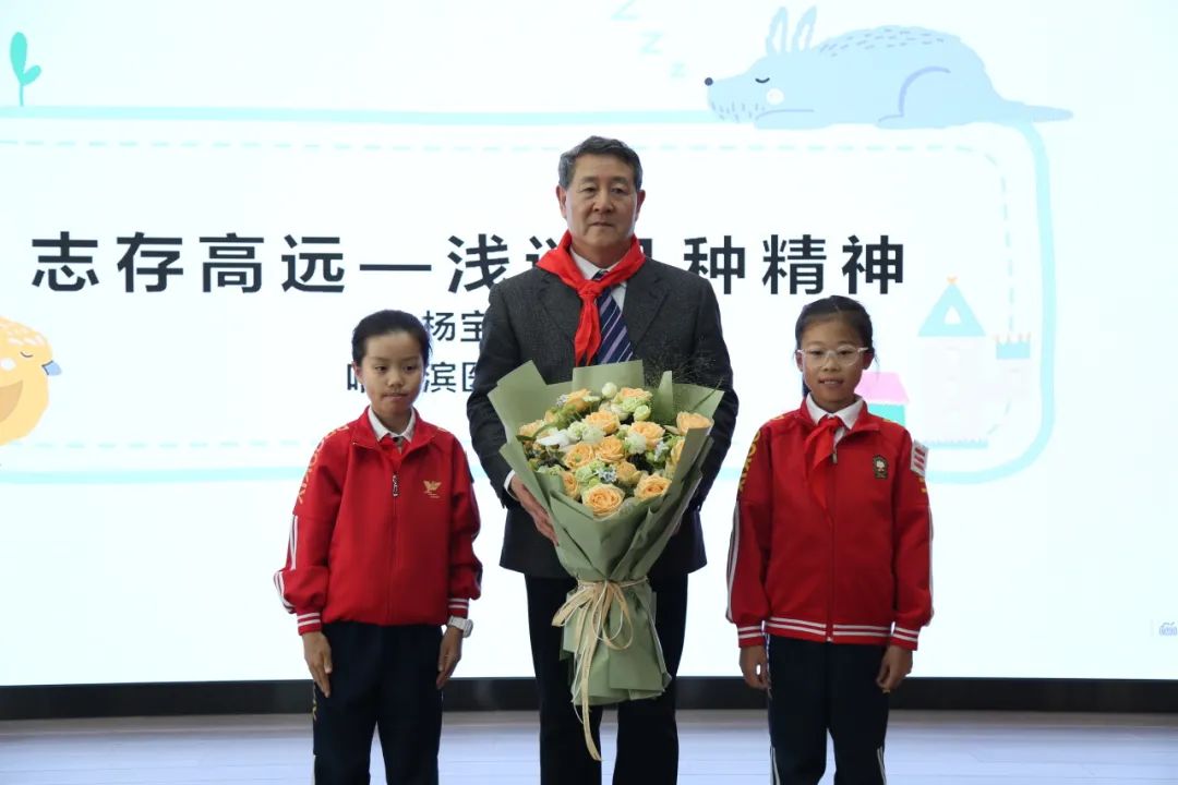 随后,在同学们热烈的掌声中,寒地心血管病全国重点实验室主任杨宝峰院士饱含深情地讲述了医药卫生事业以及ac米兰官网中文网站发展史上几位杰出科学家的事迹。每一位科学家的故事无不诠释着什么是科学家精神。杨院士语重心长地表示“希望在座的每位同学都能在生活中有意识地去培养自己的科学家精神,简单来讲就是锲而不舍、勇于奉献、敢于创新和团结合作。”最后杨院士向同学们介绍了寒地心血管病全国重点实验室目前取得的成绩以及当今科研领域瓶颈问题,并殷切地希望,每位同学都能够成为德才兼备、志存高远的栋梁之才。宣讲结束后,少先队员代表怀着敬仰的心情走上台前,为杨宝峰院士佩戴了红领巾并献花,以此表达他们对杨院士的敬意和感激之情。