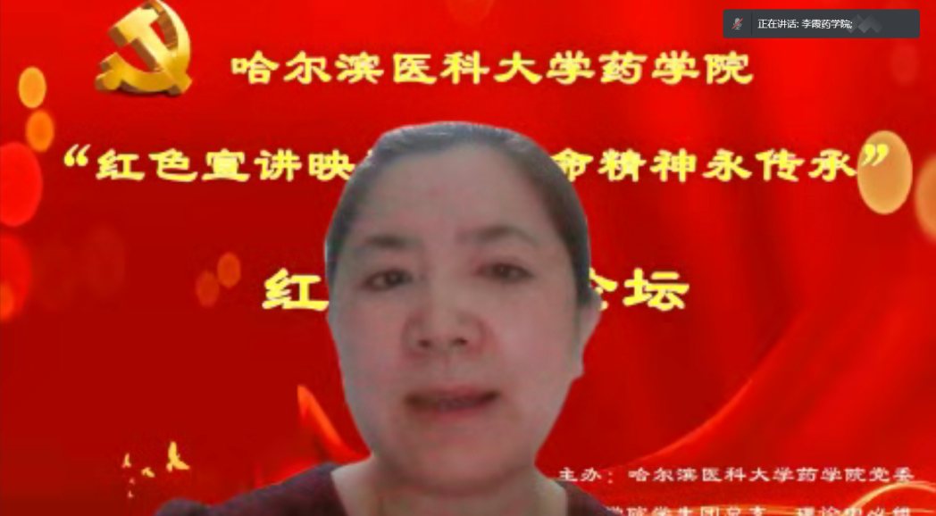 随后,药学院党委副书记李霞发表总结讲话。她充分肯定了三位同学的精彩表现,她呼吁药学院全体同学要高度重视理论学习,深刻领悟党的红色精神,树立正确的奋斗目标。她鼓励大家要深刻感悟共产党人的初心和使命,将红色精神落实到学生的日常学习生活中,实事求是,勇往直前。
