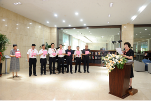 全体校友合唱了《长江之歌》。用坚定有力的歌声表达对母校的热爱和对未来的美好祝愿。他们的声音如同长江奔腾的波浪,在图书馆内回荡。