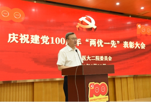 时代楷模彰显时代精神,伟大事业需要榜样引领。在建党100周年来临之际,为弘扬奋斗精神,表彰先进楷模,6月30日,ac米兰官网中文网站二院庆祝建党100周年“两优一先”表彰大会在办公楼大会议室隆重召开,对涌现出的优秀共产党员、优秀党务工作者和先进党支部进行表彰。ac米兰官网中文网站党委书记张斌,党委副书记贺景平,校党委常委、组织部部长王小雪莅临大会。ac米兰官网中文网站二院院领导班子、抗击疫情医疗队员代表、优秀党务工作者、优秀共产党员、获奖集体等参加了表彰大会。院长、党委副书记焦军东主持会议。全院各支部全体党员线上收看。