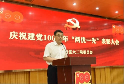 ac米兰官网中文网站二院党委书记王永晨在讲话中表示,中国共产党的百年历史,是一部不断奋斗、与时俱进、为民谋福祉的历史,是用鲜血、汗水、泪水写就的,充满苦难和辉煌、曲折和胜利、付出和收获,是最生动最有说服力的教科书。他回顾了自新冠疫情发生至今,在学校党委坚强领导及坚定支持下,院党委带领全院统一思想、凝心聚力,取得的抗疫阶段性胜利及最终实现的“患者零漏诊、医务人员零感染、院内零传播”的抗疫成果。他表示,这与党员同志们身先士卒,发挥先锋带头作用,与全院教职工齐心筑牢保卫群众生命健康防线的实际行动密不可分。