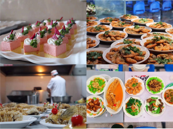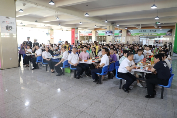 学生食堂二楼餐厅坐满了笑容盈盈的师生们,浇汁鲤鱼、蒜香排骨、香酥虾、杭椒牛柳……芳香飘逸、色味俱佳。学校还特别为远在异国他乡的留学生和回族同学准备了符合其国家和民族饮食习惯的菜品和水饺。在茶歇区,还有各种各样的甜品、水果、解暑绿豆汤和各种饮料......