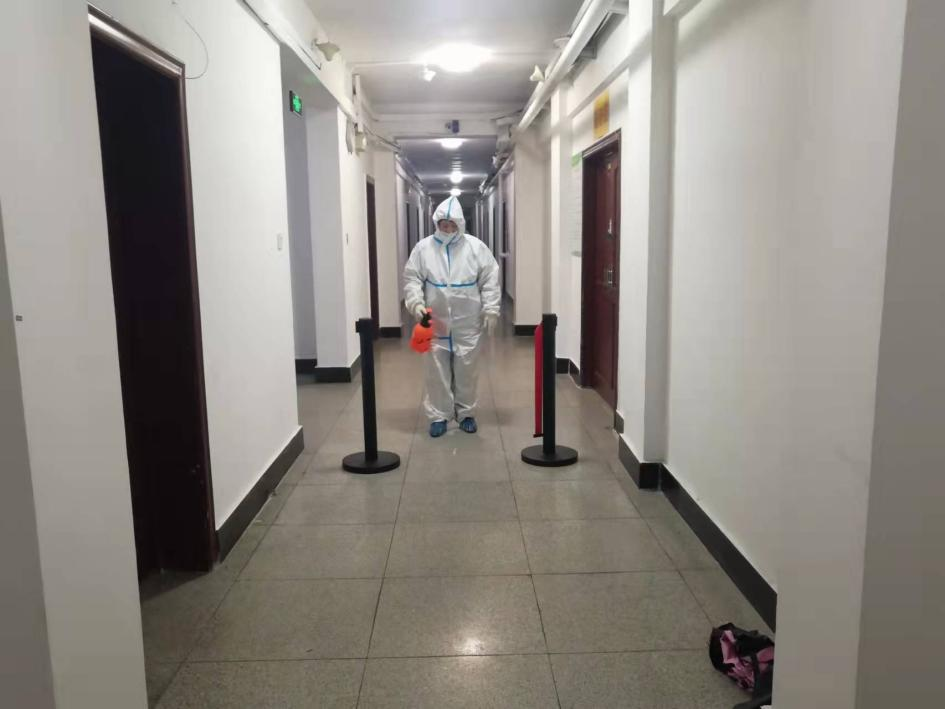 学生6公寓四楼解除隔离,进行终末消毒