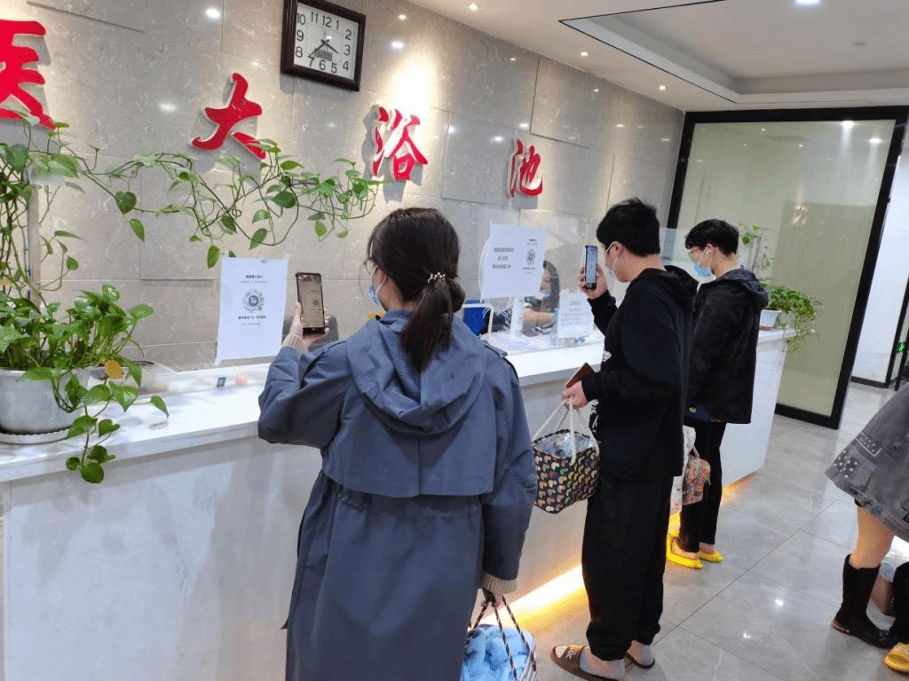 扫码后准备洗浴的同学们