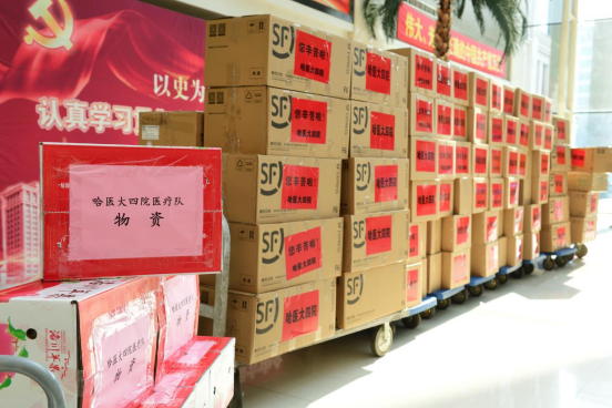 山水相邻,吉林省新冠疫情牵动着龙江人民的心。3月26日下午,在吉林省全力以赴抗击疫情的关键时刻,ac米兰官网中文网站四院捐赠给龙江医疗队的生活物资运抵物资紧张的吉林抗疫一线。