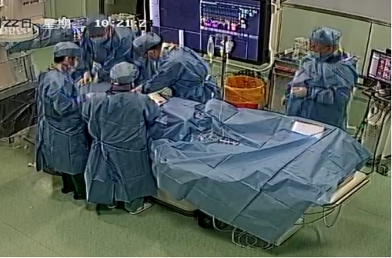 手术台上心跳突然停止,立即在手术床旁进行心肺复苏