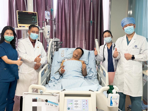 生命徐徐重启。术后第一个24小时,心脏呈微弱的蠕动状态,身体各器官的存活完全依赖ECMO和IABP的联合支持;72小时后心脏开始有明显的收缩,但射血分数仅有20%左右(正常值50%~70%之间)。在CCU医护的精心护理下,术后第四天心脏射血分数恢复到40%,撤掉ECMO,仅靠IABP支持;第五天撤掉呼吸机,第八天撤掉IABP。目前王先生意识清醒,情况稳定。