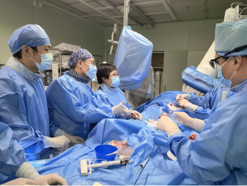 “继续按压,不要放弃,还有机会。”导管室里弥漫着紧张的气氛,所有医护人员严阵以待,各司其职,为随时可能出现的突发状态做好万全的准备,有条不紊地配合着医生进行这场与死神抢人的“战斗”。