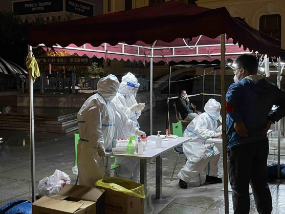 “当天风特别大,在室外采集核酸的我多了项任务,要不时地用手按压面屏,防止它被风刮飞……”21日,邹擎当晚一直采集到11时结束,共采样近700人。