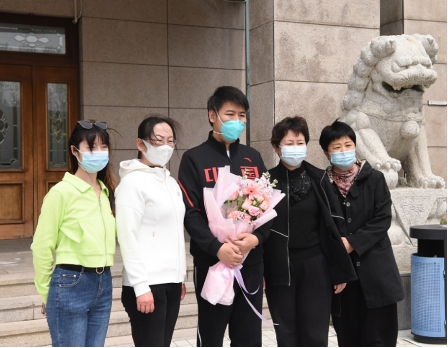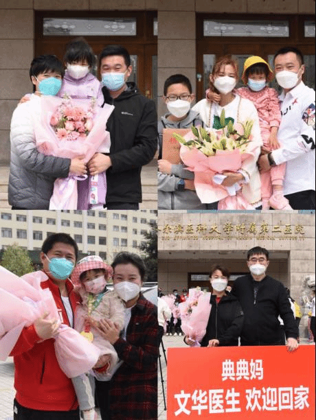 院领导班子、科室同事及队员家属早早来到ac米兰官网中文网站二院行政办公楼门前迎接队员回家