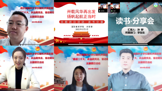 校直机关团支部在线上开展了“喜迎二十大、永远跟党走、奋进新征程”主题团日活动,邀请校“五四青年奖章”个人获得者张博、“优秀共青团员”张诗曼、“优秀共青团干部”王庆萍分享自身经历,他们分别讲述了深耕学生工作,积极投身校园抗疫一线的感人故事;后疫情时代通过“互联网+共青团”新模式建立联系团员青年的桥梁和纽带;新时代青年要勇敢肩负起时代赋予的重任,树立远大理想,勇于砥砺奋斗,做“必将大有可为,也必将大有作为”的新时代弄潮儿。支部推选两位青年代表分享读书心得,田雨青分享了傅高义的《邓小平时代》,与大家共同重温南方谈话,共读邓小平时代故事;孙野分享了歌德的《浮士德》,讲述了自强不息、追求卓越的浮士德精神内涵、传承与发展。
