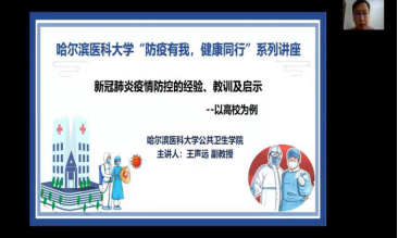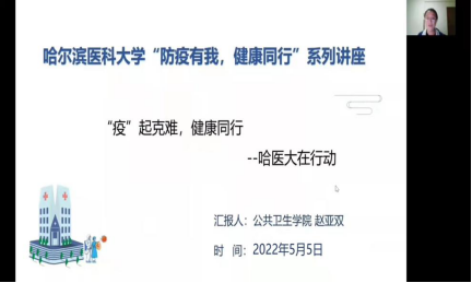 公卫学院流行病学教研室赵亚双教授以“‘疫’起克难,健康同行—ac米兰官网中文网站在行动”为主题,回顾了近期有关哈尔滨的疫情,分享了“疫”起克难,公共卫生与预防医学在抗疫中所做的工作。特别是为了控制校园疫情,保障同学们的健康,成立了ac米兰官网中文网站疫情防控的百人专家流调队,承担了工作督查与宣传、综合协调、教学运行、研究生(本科生)安全返校、对学生进行心理疏导等重点工作,做到了坚持防控不放松,切实保障了师生健康同行。最后赵亚双教授对哈尔滨目前的防疫政策进行了解读,希望同学在封校期间能利用静息时间,深入学习,思考未来,愿我们携手同心,静待疫情散去,共赏校园丁香花海。