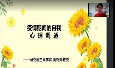 马克思主义学院周艳娟教授以“疫情期间的自我心理调适”为主题,针对疫情期间,学生在校园封闭管理的情况下可能会出现的不良情绪进行了细致的分析。并传授了一些帮助同学们化解不良情绪的锦囊妙计,比如音乐运动疗法,拥抱安全岛技术等。作为一名马克思主义原理学专业的教授,周老师结合辩证法原理,纠正同学们不合理的信念,调整认知;引导学生主动向上打开杏仁核调控的情绪开关,养成健康的思维习惯;最后,周老师通过论述必然王国和自由王国的辩证关系,让同学们明白了该如何理性面对疫情,顺利渡过难关。
