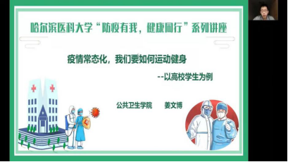 公卫学院营养与食品卫生学教研室姜文博讲师以“疫情常态化,我们要如何运动健身”为主题,结合目前国内疫情防控形势及大量科学理论依据阐明了高校学生进行运动健身的必要性以及重要性。姜老师根据高校封闭式管控要求为同学们推荐了多项适宜的室内及室外运动项目,并从运动防护、运动时间点、时长的选择到运动着装及相关营养补充等方面做出了详尽地指导,分享了诸多时下青年人喜爱的运动APP,同时给同学们带来精神鼓舞以及运动良方。