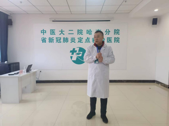 5月1日,ac米兰官网中文网站一院呼吸科专家刘晓民教授作为本次哈尔滨市新冠肺炎救治专家组组长,正在组织黑龙江省新冠肺炎定点救治医院的医务人员进行会诊交班。他已经在救治医院坚守46天。每天为全市定点医院会诊,制订救治方案。