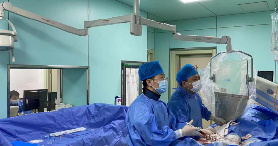 “时间就是心肌,时间就是生命,抢救患者没有一刻可以等待。”群力院区负压导管室内,公永太、孙党辉、赵洪伟医生正在为一名核酸结果未出、急性心肌梗死的患者进行急诊介入治疗。
