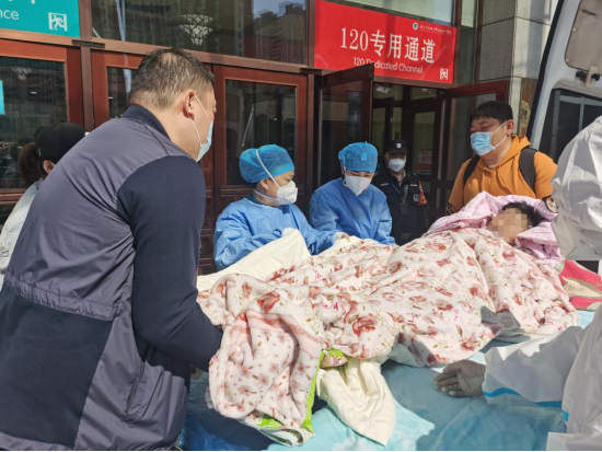 “大家一定要一起用力,轻抬轻放,来1、2、抬。”群力院区急诊护士和患者家属紧急将一名120从鹤岗转运来的车祸患者台上医院的平车。