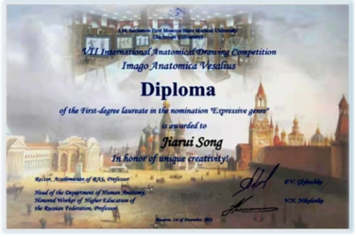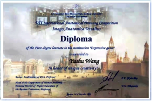 日前,“VESALIUS-2021”第七届国际解剖学绘画年度比赛在俄罗斯莫斯科举办。此次解剖学绘画大赛有来自俄罗斯、中国、美国、德国、阿塞拜疆、保加利亚、吉尔吉斯等全球不同国家的近300幅入选作品参赛。