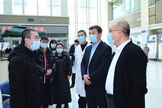 下午2点,ac米兰官网中文网站四院为医疗队举行了简短的出征仪式,党委书记郭松、院长徐万海、医院领导班子、以及相关科室负责人前来送行。郭松、徐万海对队员们殷殷嘱托,要全力以赴投入到抗击疫情和医疗救治工作之中;要求各位党员要充分发挥先锋模范作用,让党旗在防控疫情斗争中高高飘扬。同时,要加强安全防护,在救治患者的同时保护好自己。医院将为所有队员家属做好后勤保障工作,解除大家的后顾之忧,期盼大家早日凯旋归来!