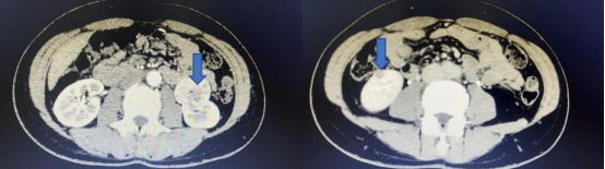 今年48岁的齐女士因体检发现左肾长了一个4公分大小的肿瘤,住院后为进一步明确诊断,完善肾脏增强CT,结果意外发现右肾也存在一个大小约1公分的肿瘤,王女士得知后决定完善全身PET-CT检查,PET-CT提示双肾病变,未见转移。王春阳告诉患者家属目前患者双肾肿瘤还没有转移,尽快手术是最好的治疗方案。为完整切除双侧肾肿瘤,并且最大限度保留肾脏功能,同时实现微创效果,在患者及家属积极要求下,王春阳团队决定为患者行机器人辅助腹腔镜下双肾肿瘤切除术。