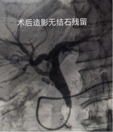 史立军为患者进行详细的术前检查和分析。患者肝总管与胆总管已经被结石充满,导致胆管梗阻,出现黄疸和腹痛等症状。传统的外科手术取石,可能会造成胆管损伤和狭窄。根据患者结石巨大,且结石位置复杂的病情,史立军制定了精准的治疗策略,择期开展胆道镜(Spyglass)下激光碎石,逐一击破、取石。