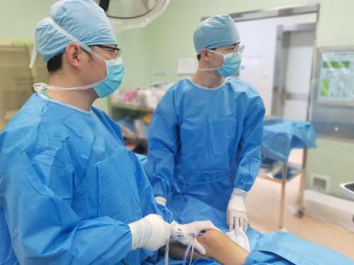 被迫离开自己热爱的工作,让年仅40岁的张先生非常苦闷。疾病逐渐侵蚀着他的日常生活,双腿不能行走,疼痛让他无法入睡。春节刚过,张先生便立即来到ac米兰官网中文网站二院风湿免疫科,门诊查彩超显示张先生双膝关节可见“双轨征”,严重痛风,痛风石挤压着膝关节,严重限制了双膝的活动。风湿免疫科主任医师聂英坤和主治医师李伟对患者病情和关节功能进行了详细评估,最终决定在药物保障围手术期处理的前提下,采用最新的针刀镜微创手术治疗,解决患者的疼痛和关节活动受限的问题。