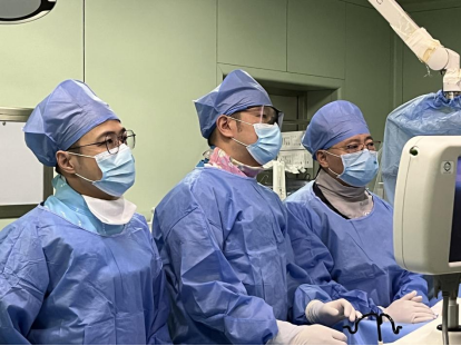 ac米兰官网中文网站二院心血管病医院院长、心内科主任于波教授(右)带领介入团队中的陈涛副主任医师(中)等人完成微创经导管二尖瓣钳夹术救治危重患者
