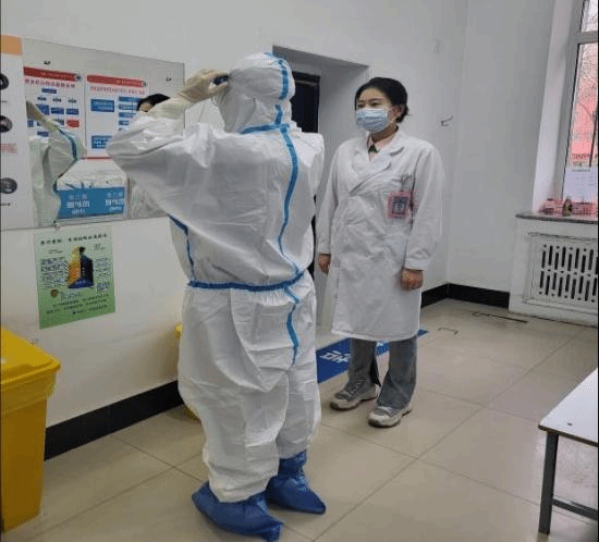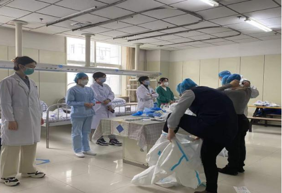 护理部慎终如始地做好疫情相关各项护理工作,召开全院护士长疫情相关工作会议,强化全院护理人员的防控意识,对防控工作再强调,再落实,再部署;组织支援吉林医疗队线上防护专项培训,科室再次组织防护培训,穿脱防护服及核酸采集全员培训,不落一人。