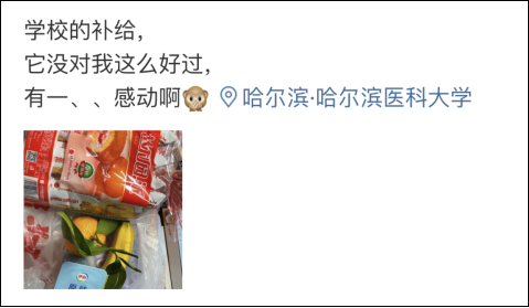 “真是感受到医大的温暖啦,隔离的第一天也是被幸福包围啊”