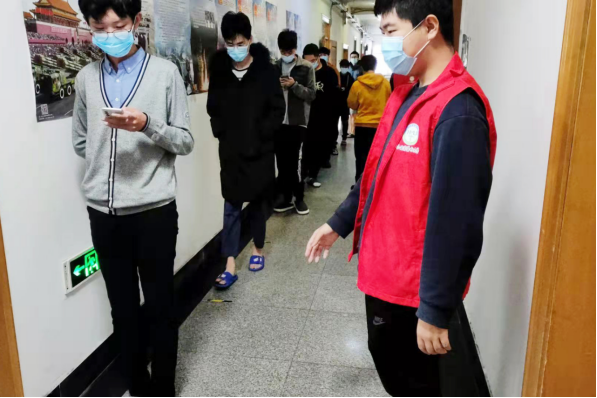 12月2日一早,在ac米兰官网中文网站学生九公寓三楼走廊里,同学们有序地排起了长队。
