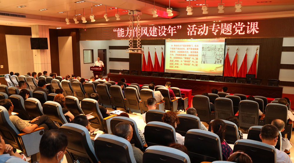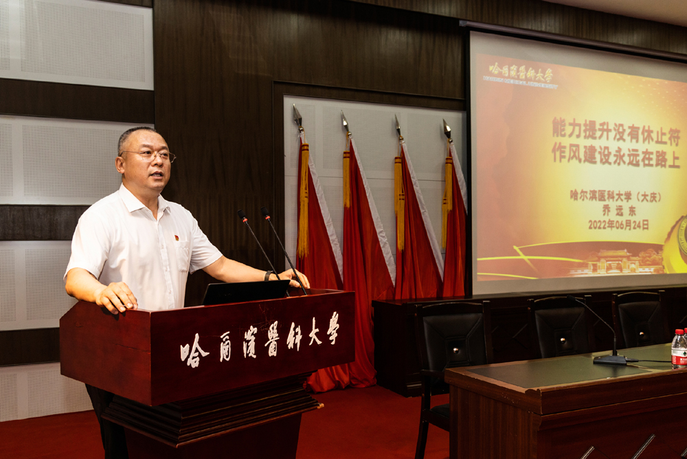 为培养有担当、敢作为的高素质“四有”干部队伍,有的放矢开展好能力作风建设年活动,切实提高干部的能力和本领。6月27日下午,大庆校区校长乔远东在校区2022年干部培训班上,以“能力提升没有休止符 作风建设永远在路上”为题,为全体学员上专题党课。全校科级以上及机关全体干部、基层党务干部、40岁以下博士人员参加培训学习。