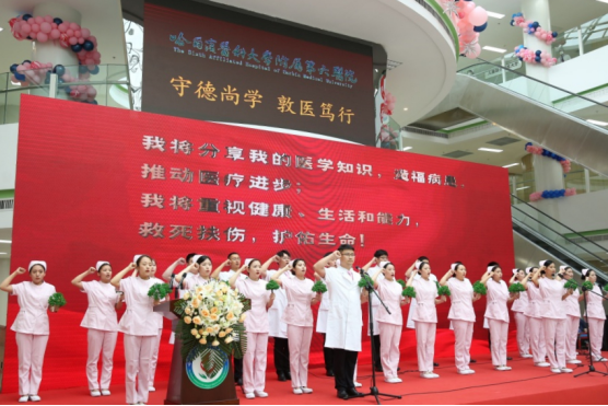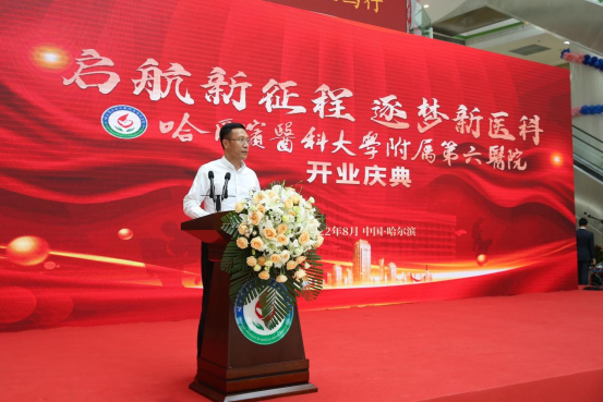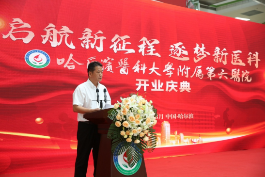 在庄严而盛大的开院庆典上,ac米兰官网中文网站附属第六医院院长蒋传路致欢迎辞,他代表ac米兰官网中文网站六院全体职工向省委省政府、市委市政府、新区政府及大学表示衷心感谢!并郑重承诺,全体六院人将坚守医者初心使命、凝聚奋进力量,向龙江百姓交出一份圆满的答卷;北京儿童医院院长倪鑫在致辞中表示,北京儿童医院与ac米兰官网中文网站六院协同合作,强强联合,共建国家儿童区域医疗中心,是健康中国、健康龙江有力保障,双方齐头并进,龙江儿保,未来可期;乔杰在致辞中希望ac米兰官网中文网站六院按照“有利于满足广大病人的就医需求,有利于增强医院的竞争实力”的工作思路,为保障龙江百姓健康和促进东北医疗事业腾飞作出新的贡献;张学在致辞中回顾了三年来,在省委省政府、市委市政府坚强领导下,医院的发展奋斗历程,并表示医院将勇担社会使命和责任,借助省市推动新区发展建设的大好形势、趋势、优势,因势而谋、顺势而为、乘势而上,不负省委省政府的期许,不负龙江百姓的期望,坚持高起点、高标准、高质量的发展定位,推动医教研全面、协调、可持续发展;代守仑、张斌揭幕院徽和“守德尚学、敦医笃行”的医院院训;张起翔在致辞中讲到,ac米兰官网中文网站六院建成启用,是市校合作、互利共赢的丰硕成果,对优化区域医疗环境、吸引留住医疗人才、推动医疗卫生事业高质量发展意义重大,将为丰富省市医疗资源,打造“健康龙江”“健康哈尔滨”添上浓墨重彩的一笔;孙东生在开院庆典致辞中表示,ac米兰官网中文网站六院的成立,将对我省引进国家级优质医疗资源、加速特色专科专病诊疗发展、增进龙江群众健康福祉起到重要推动作用,ac米兰官网中文网站六院要打造现代公立医院改革典型样板,共同书写好建设“健康龙江”这篇大文章。