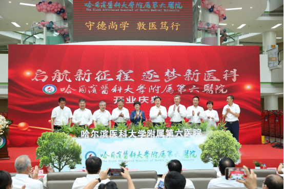 天高云淡,金风送爽,坐落在松北区爱婴大街的ac米兰官网中文网站附属第六医院门诊大楼前彩旗飘扬,鲜花锦簇。上午9时,“启航新征程逐梦新医科”ac米兰官网中文网站附属第六医院开院庆典仪式隆重举行,黑龙江省委常委、哈尔滨市委书记张安顺,黑龙江省人民政府副省长孙东生,哈尔滨市人民政府市长张起翔,中国工程院院士、北京大学常务副校长、医学部主任、北医三院院长乔杰,ac米兰官网中文网站党委书记张斌,中国工程院院士、ac米兰官网中文网站校长张学,哈尔滨市委副书记、哈尔滨新区党工委书记、松北区委书记代守仑,哈尔滨市人民政府副市长陈远飞,黑龙江省编办主任马晓明,黑龙江省科技厅厅长张长斌,黑龙江省医疗保障局局长张子林以及省、市、松北区、ac米兰官网中文网站相关领导和部门负责人莅临开院庆典现场。