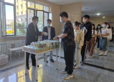 今岁中秋夜,喜联教师节。9月9日中午,学校党委书记张斌等校领导来到学生公寓为学生发放中秋礼包。张斌与学生们亲切交谈,了解关心同学们的生活情况、节日安排,并为同学们送上节日祝福。发放现场气氛热烈,每一位同学的脸上都洋溢着幸福的微笑,对学校给予的节日“仪式感”满分好评。学生们领取中秋礼包的同时,也由衷的为老师们送上了真挚祝福。