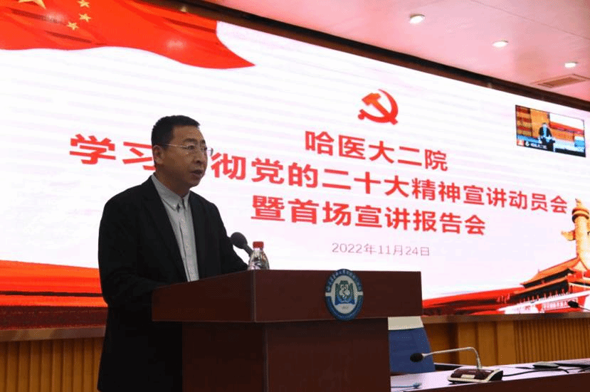 党委书记王永晨以《坚守初心使命做健康中国的守护者》为题,做党的二十大精神首场宣讲报告。王永晨从党的二十大概况背景核心要义、主要成果、丰富内涵及认真学习领会党的二十大精神四个方面做了系统宣讲和深入阐释。全院要更加紧密地团结在以习近平同志为核心的党中央周围,深刻领悟“两个确立”的决定性意义,牢记“国之大者”,增强“四个意识”、坚定“四个自信”、做到“两个维护”,自觉把思想和行动统一到党的二十大精神上来。