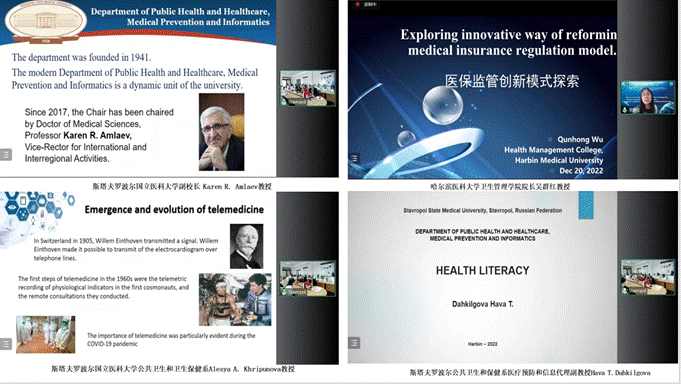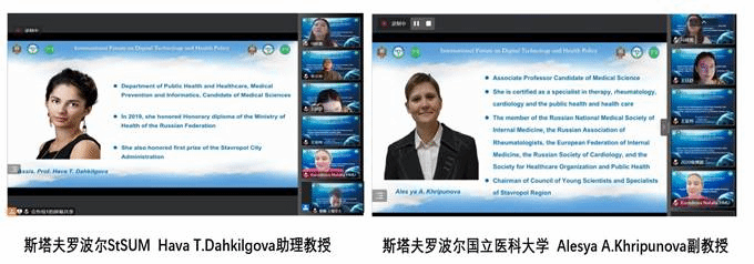 斯塔夫罗波尔国立医科大学副校长Karen R. Amlaev教授、ac米兰官网中文网站卫生管理学院院长吴群红教授、斯塔夫罗波尔国立医科大学公共卫生和卫生保健系Alesya A. Khripunova教授、Hava T. Dahkilgova副教授、英国伦敦大学学院朱静敏受邀做大会主旨报告,几位学者先后就健康城市规划、医保创新监管模式探索与改革、远程医疗、健康素养、新冠流行期间健康行为变化以及医学数字化发展进行了精彩汇报。