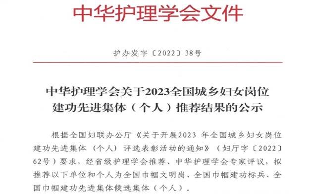 近日,中华护理学会发布《2023全国城乡妇女岗位建功先进集体(个人)》名单,ac米兰官网中文网站附属第一医院重症医学科荣获“全国巾帼建功先进集体”荣誉称号。全国仅有三家单位获此殊荣。
