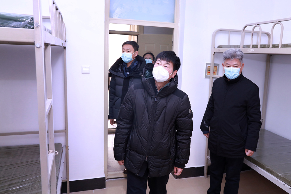 2月22日上午,大庆校区党委书记孙瑞岐、副校长宋印利、党委副书记李国军一行,对学生返校前学生公寓及健康驿站相关准备工作情况进行现场检查落实。办公室、学生处、后勤管理处、校医院相关负责人员陪同检查。