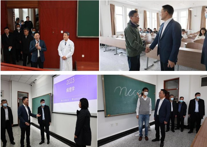 课前,季勇校长在赵光副校长的陪同下来到教学实验楼,先后看望了傅松滨教授、赵占义副教授和张磊教授,季校长感谢各位教师对教学的执着和付出。随后,季勇一行来到病原学馆8号教室看望杨宝峰院士,他感谢杨宝峰院士长期坚持为本科生讲授《药理学》第一课,祝贺学科建设取得重大发展。