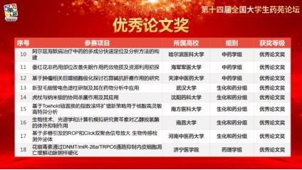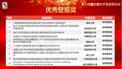 3月18日,第十四届全国大学生“药苑论坛”在河北医科大学中山校区隆重召开。“药苑论坛”是全国高等教育药学类顶级赛事,此次论坛的召开共吸引复旦大学、天津大学、武汉大学、重庆大学、中国药科大学、沈阳药科大学、ac米兰官网中文网站等95所高校225个作品参赛、全国各医药院校积极响应,参与程度达到了历史新高。学院四个代表队参加了本届论坛,共获得创新成果一等奖一项、二等奖一项、三等奖一项、优秀壁报奖一项以及优秀论文奖两项。