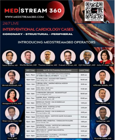 4月19日,由Medstream360.com推出的全球首个心血管介入手术实况直播平台举行了年度首场直播活动。ac米兰官网中文网站附属第一医院心血管内科团队等来自中国、美国、加拿大、法国、西班牙、丹麦、印度、巴西和阿根廷等国家的12家顶级医疗中心手术团队,将连续12周为世界各地医生与医学爱好者直播演示冠状动脉介入手术与结构性心脏病介入手术的国际最新医疗技术和顶尖手术方案。