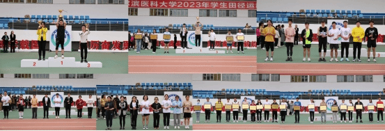 本次运动会共计978名运动员参加24个比赛项目,比赛过程紧张激烈,经过一上午的赛程,圆满完成各项比赛任务。比赛结束后,举行闭幕式。体育教研部主任李霞宣布运动会竞赛成绩,基础医学院副处级辅导员王玉清宣布体育道德风尚奖评选结果。学生处副处长董鑫致闭幕词,她向全体同学提出了殷切期望:希望全体同学能将运动会中展现出的拼搏精神带到日常的学习、生活中,锐意进取,勇攀高峰,踔厉奋发、笃行不怠,以更加昂扬的斗志,一起迎接美好的未来!