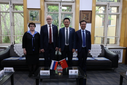 5月25日下午,俄哈巴罗夫斯克边疆区政府负责社会问题副主席叶甫根尼·列昂尼德维奇·尼科诺夫一行来校访问。校长季勇、副校长周钦在主楼小会议室会见来宾。