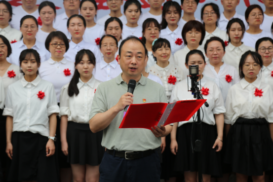 为庆祝中国共产党建党102周年,全面贯彻落实党的二十大精神和习近平新时代中国特色社会主义思想,6月27日下午,基础医学院举办“永远跟党走 奋进新征程”师生合唱汇演。基础医学院党委书记金焰致开幕辞。
