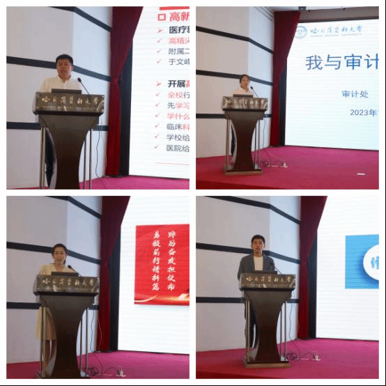 医院管理处张桥回顾协助建立校园疫情防控体系、筹集防疫物资、组建医疗队、人员排查、流调研判、核酸检测、疫苗接种及处理校园突发疫情等方面工作,提出决策部署是核心、制度方案是根本、全校行动是基础、信息通畅是保障的防疫工作经验,并对医疗治疗管理、高新技术开展等工作进行反思和规划;审计处马欣回顾从党建与业务融合中汲取养分,从内审工作的责任中磨砺蜕变,与审计工作共成长的历程,着重谈个人如何以内控审计为主线,强化风险防范能力,督促整改落实,聚焦审计成效,做好审计“上下篇文章”;学生处孙野通过学工部“一站式”学生社区建设,分享了“一个中心协同、九位一体发展、两条路径育人、六只队伍进驻”的“1926”社区管理模式及社区“5赛-2季-1表彰”文化,如何全过程、无死角、零盲区服务学生学习生活,展示了数字化时代学生工作的新模式、新发展以及对新时期学生工作新路径的探索;人事处魏立丰从组织领导、规章制度、教师培训、先进评选、讲座、调研反馈等维度对师德师风建设进行了系统回顾,提出少数教师存在违反学术规范、发表不当言论行为的问题,下一步工作将加强教师思想政治教育,常态化开展师德专项教育,加大对教师选树宣传和表彰奖励力度,健全师德师风考核,强化师德师风监督,力争构建师德师风建设长效机制。四名年轻管理干部认真思考精心准备,围绕学校发展建设目标,结合本职工作讲收获谈体会。