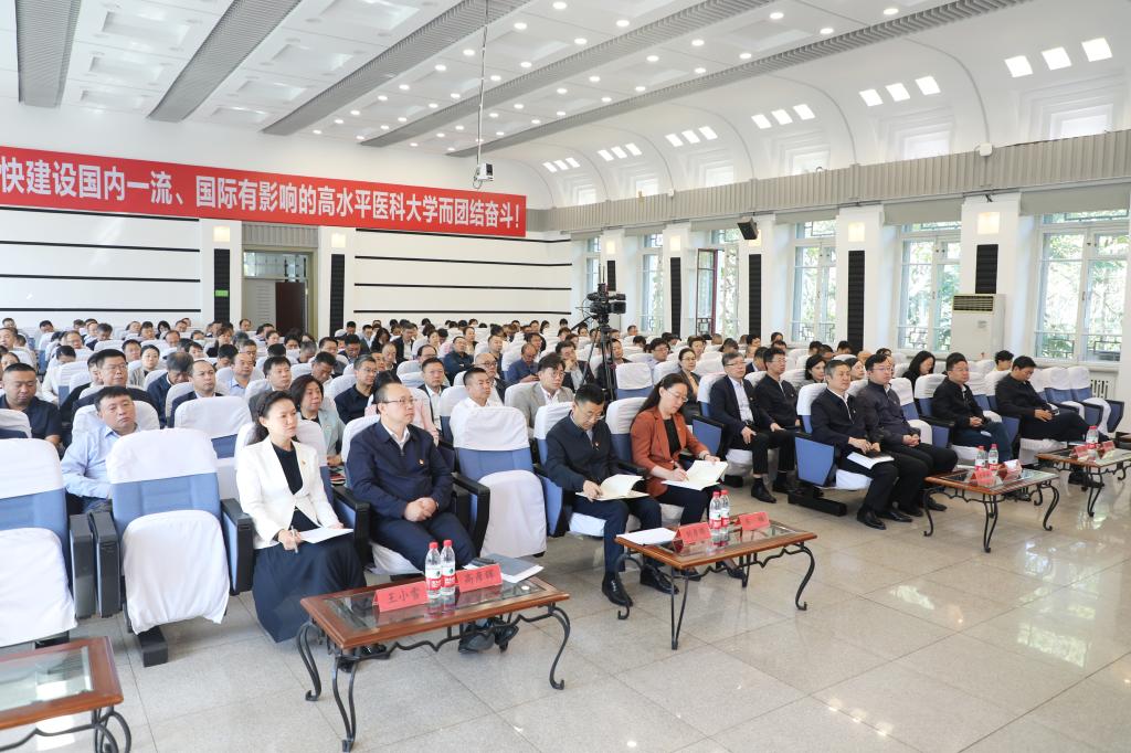 本次会议采取线上线下相结合的形式开展。学校领导班子成员、厅级干部、处级干部、机关党支部书记、教师学生党员代表共计180余人在学校主楼三楼演讲厅参会,大庆校区线上参会。