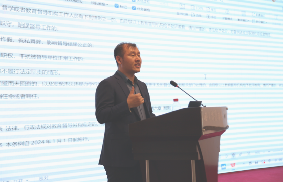 姜宏佺带领全体参会人员共同学习《黑龙江省教育督导条例》,他强调,学校将持续强化督学管理和保障措施,着力把督导队伍建设好、管理好,为教育优先发展和高质量发展提供保障。