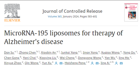 近日,ac米兰药学院艾静教授团队在治疗阿尔茨海默病药物研究取得新突破,研究成果论文《MicroRNA-195 liposomes for therapy of Alzheimer's disease》发表于高水平期刊《Journal of Controlled Release》(2022年IF:10.8)。